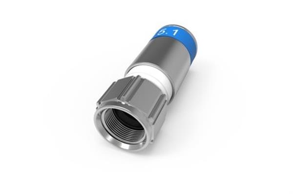 Compressie F-connector voor optionele Belden H125 kabel of Hirschmann KOKA 9 of KOKA 799 coaxkabel uit ons assortiment. Uitsluitend te plaatsen met optioneel verkrijgbare Cabelcon CX3 pocket tool 59/6 of Cabelcon ALL SIZE tang.