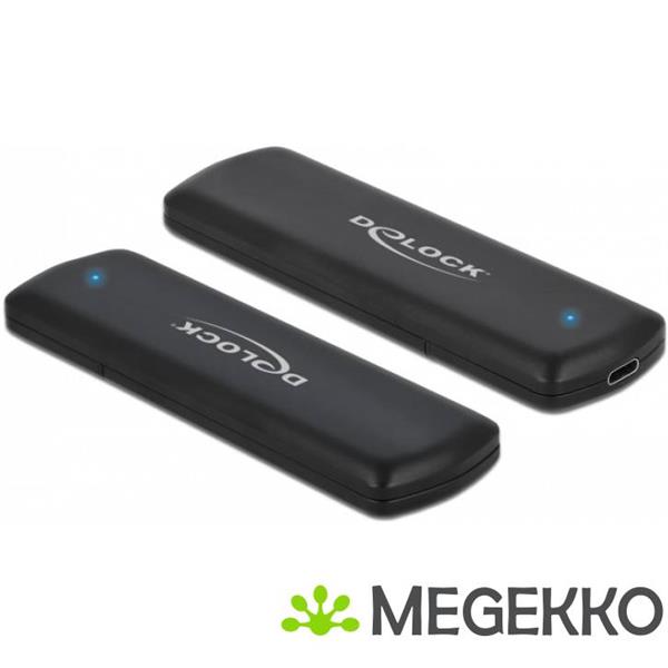 Beschrijving Deze behuizing van Delock maakt de installatie van een M.2 PCIe NVMe SSD of SATA M.2 SSD in 2280, 2260, 2242 en 2230 formaat mogelijk. Hij kan via USB op de pc of laptop worden aangesloten. De robuuste metalen behuizing zorgt voor een optimale temperatuur van het geheugen. Combi-behuizing Het grote voordeel van deze Delock M.2 behuizing is dat zowel SATA als PCIe (NVMe) M.2 SSD's in de behuizing geplaatst kunnen worden. Het geheugen wordt automatisch herkend door de chipset en kan vervolgens worden gebruikt. SSD-installatie zonder gereedschap Het bijzondere aan deze behuizing is dat er geen gereedschap nodig is om de M.2 SSD te installeren. Door een beetje druk kan het deksel naar achteren worden geduwd, de SSD wordt met een rubberen nippel op de print bevestigd en vervolgens wordt het deksel weer vastgezet totdat deze vastklikt. Technische details