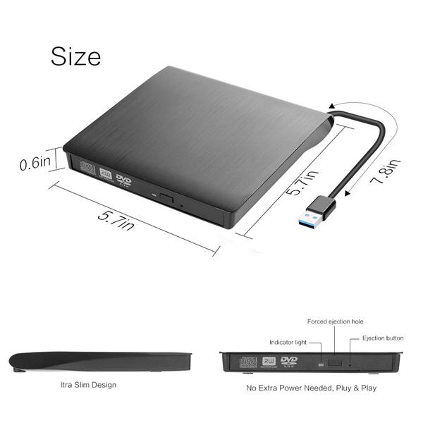 DrPhone DW2 - Externe DVD/CD Writer - DVD Speler - USB 3.0 - Externe Optische Drive - DVD RW CD Schrijver/ Brander/ Lezer - Geschikt voor Windows / Mac OS / Linux Macbook